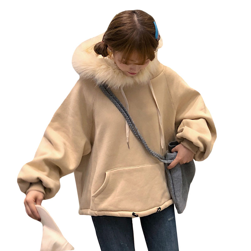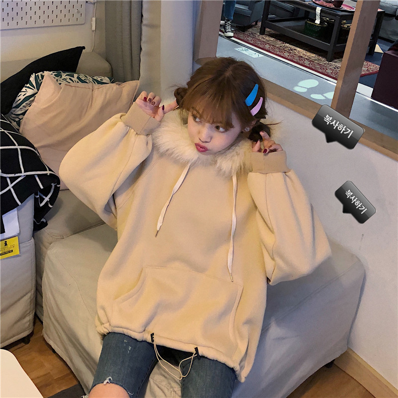 2018新款秋冬女裝韓版寬松毛領連帽加厚加絨套頭超火衛衣上衣外套