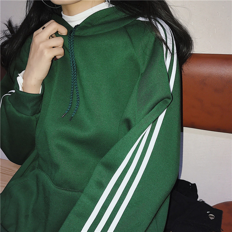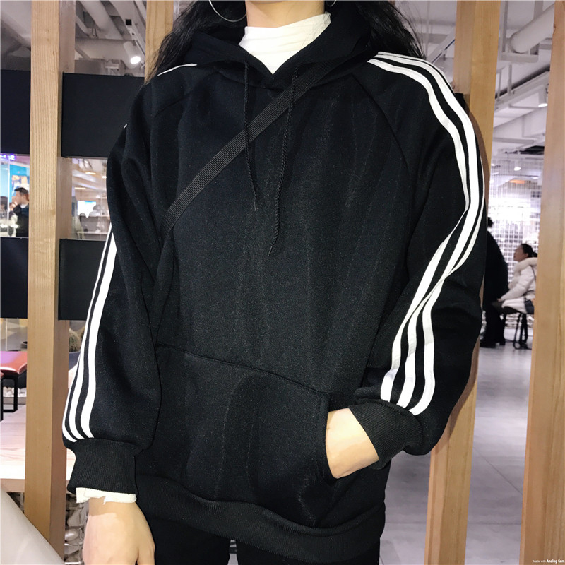 慵懶風外套秋裝女2018新款韓版三條杠連帽衛衣休閑寬松長袖上衣潮