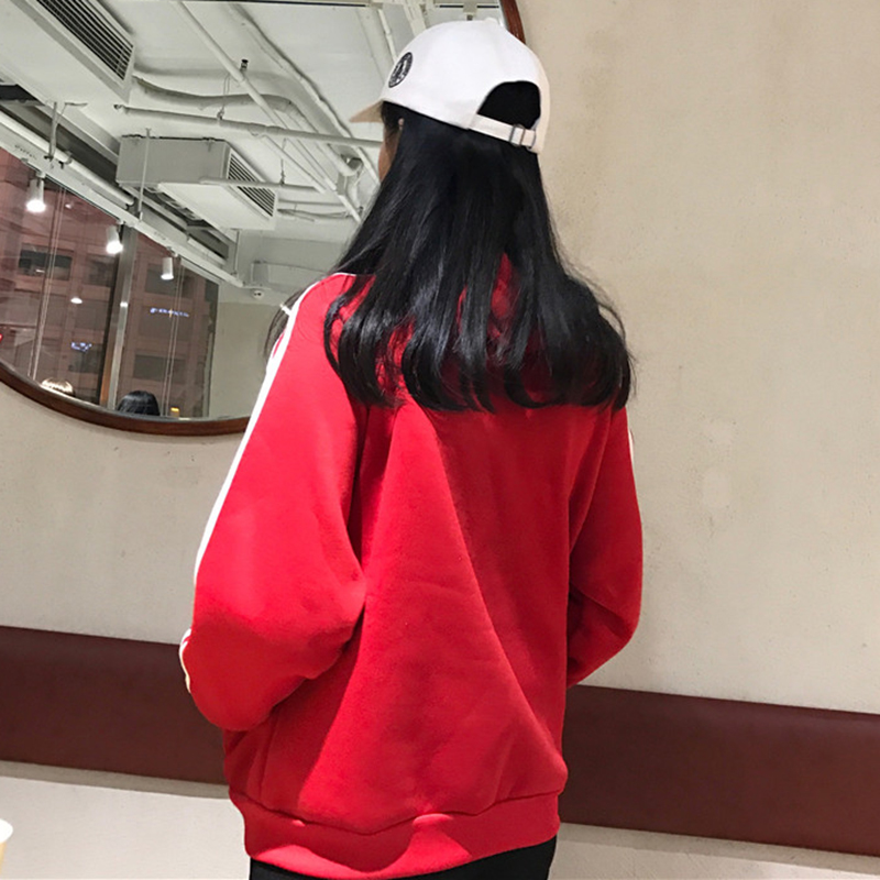 / 慵懶風外套秋裝女2018新款韓版三條杠連帽衛衣休閑寬松長袖上衣潮