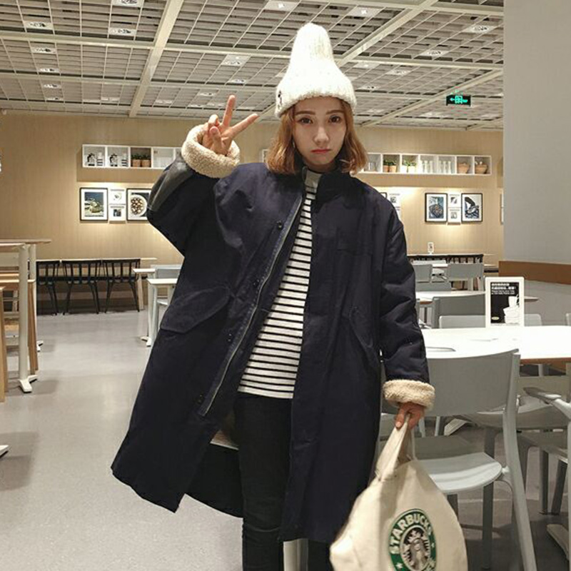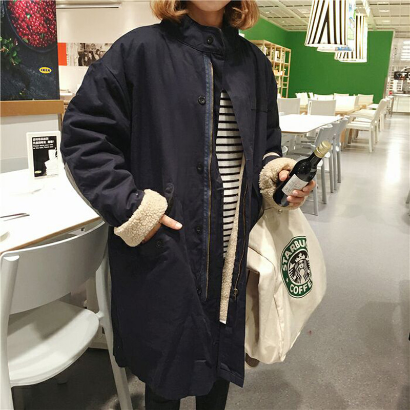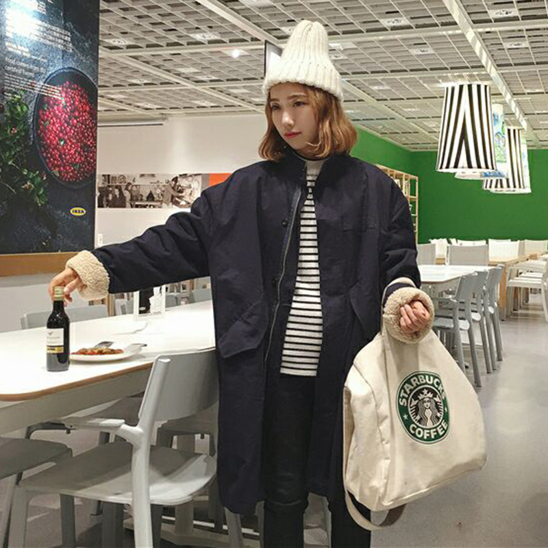 / 風衣女中長款羊羔毛外套秋冬裝新款寬松長袖大衣學生加厚保暖棉衣