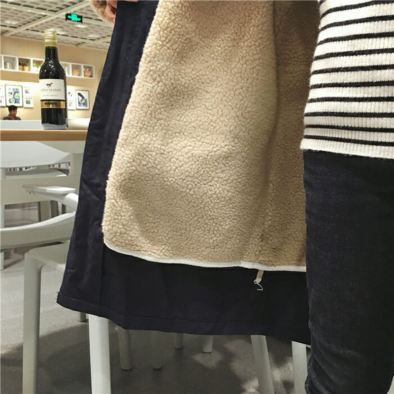 風衣女中長款羊羔毛外套秋冬裝新款寬松長袖大衣學生加厚保暖棉衣