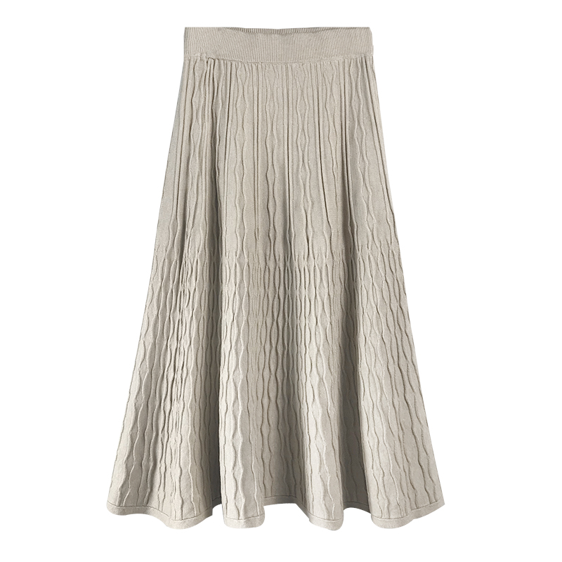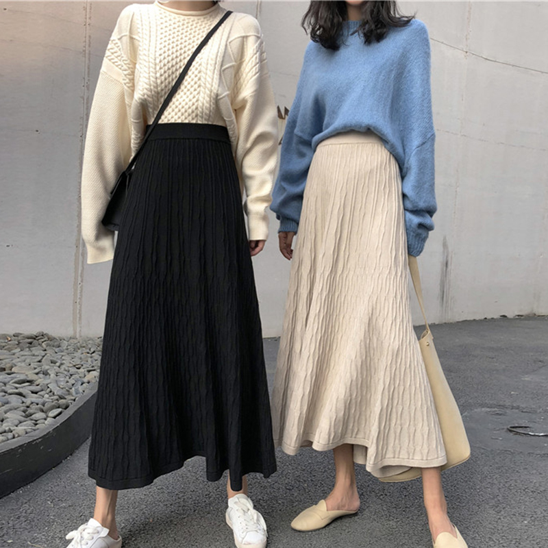 秋裝女2018新款針織長裙子復古時尚a字裙高腰顯瘦黑色壓褶半身裙
