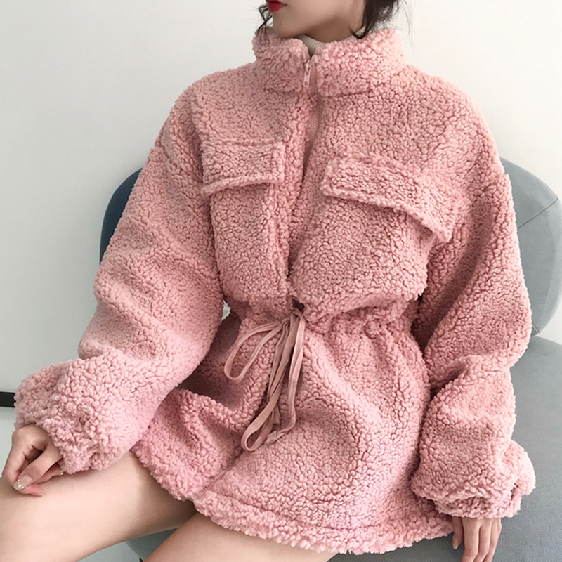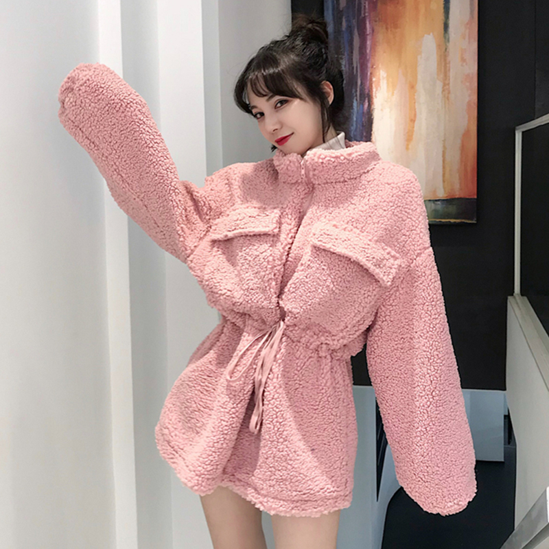 冬季女裝2018新款韓版收腰顯瘦毛茸外套寬松加厚中長款開衫上衣服