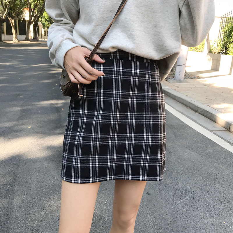 / 韓版chic格子半身裙秋裝女2018新款學生高腰A字裙清新休閑短裙子