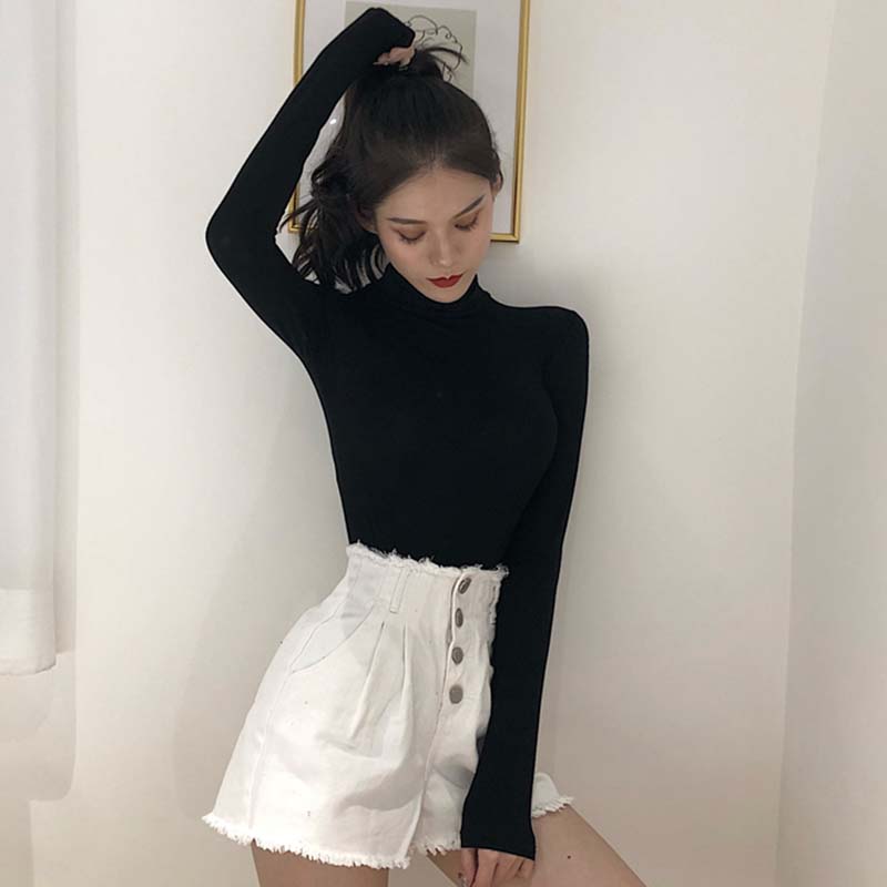 / 緊身打底衫秋裝女新款韓版港風修身純色長袖T恤學生慵懶高領上衣