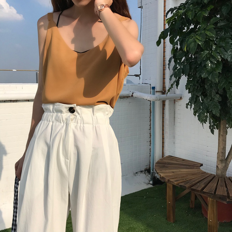 / 休閑褲女夏2018新款韓版女裝寬松學生百搭花苞高腰顯瘦闊腿九分褲