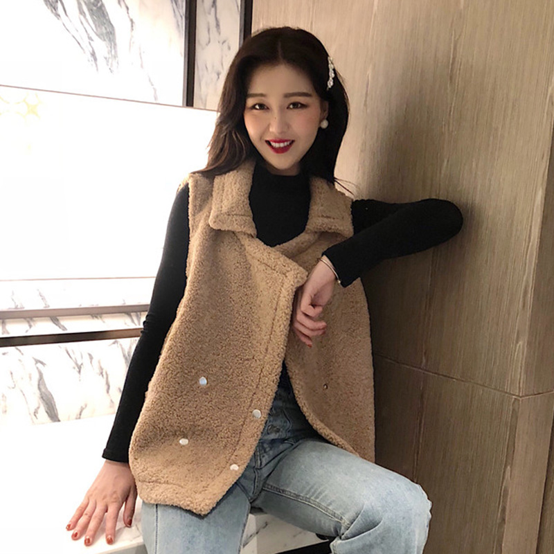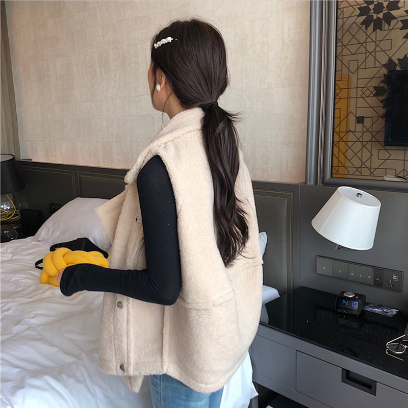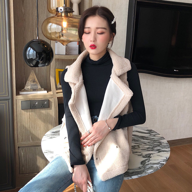 / 秋裝女2018新款韓版簡約純色羊羔毛馬甲學生時尚翻領休閑坎肩外套