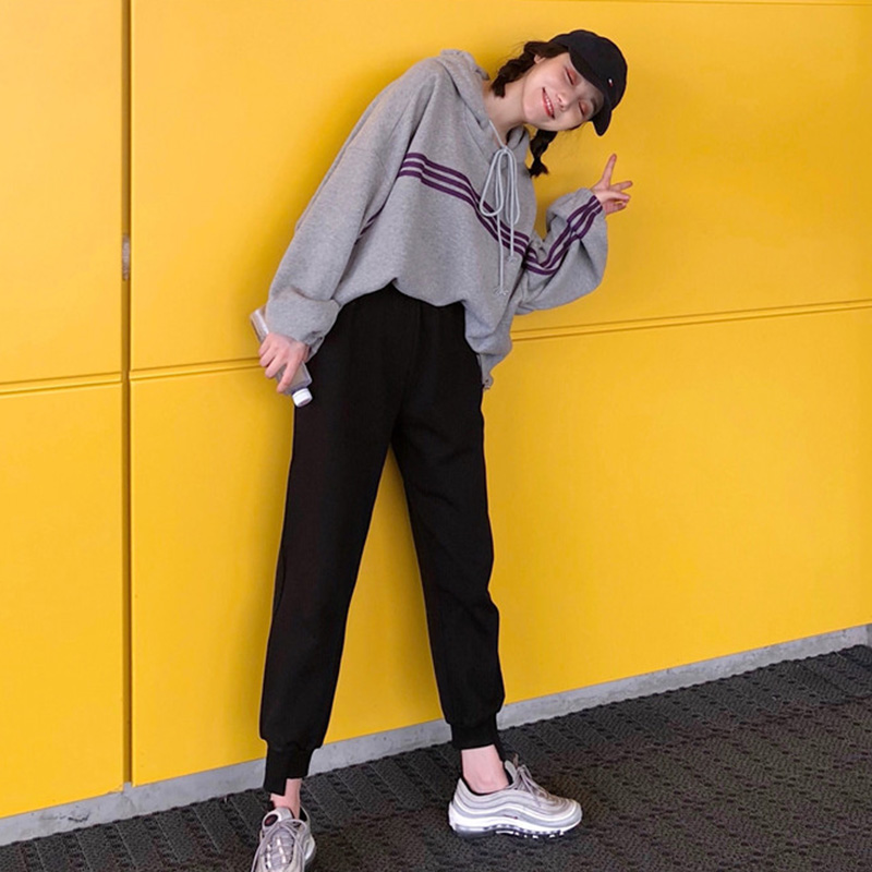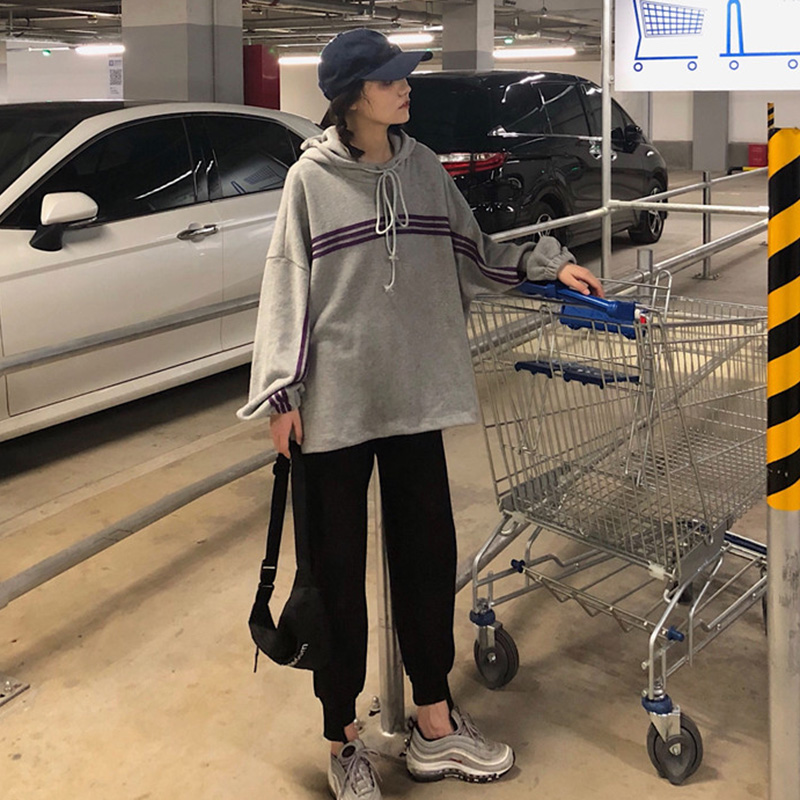 / 秋裝女2018新款韓版灰色絨面休閑慵懶風連帽寬松學生衛衣外套女潮
