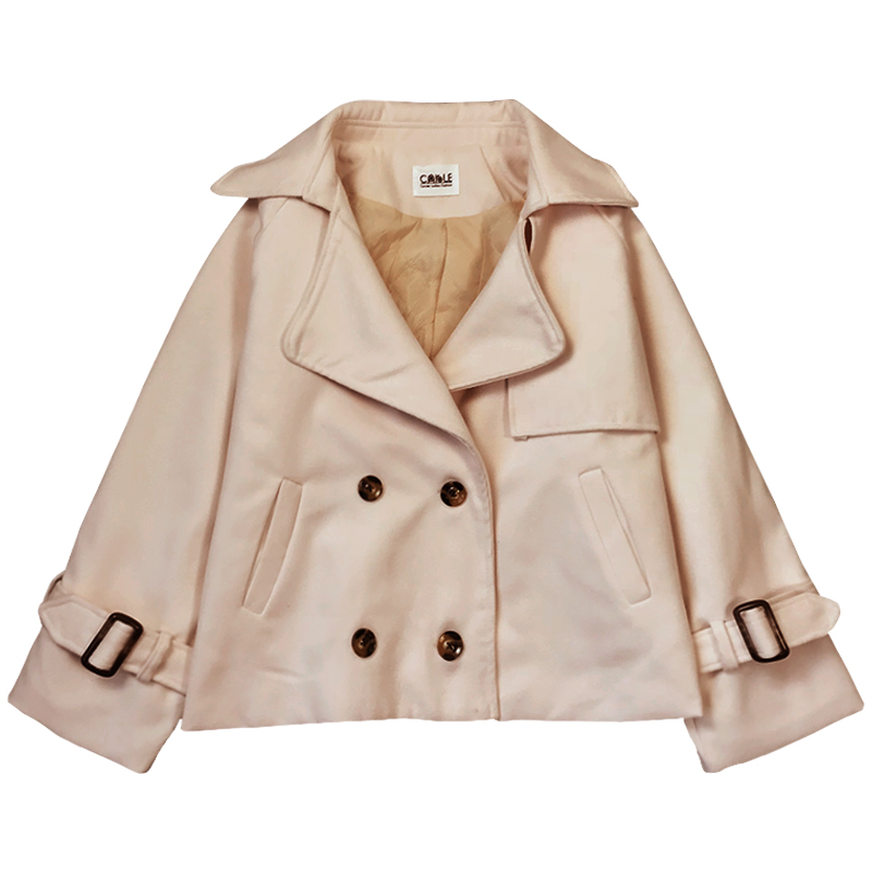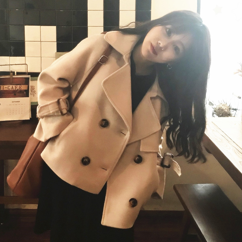 復古西裝領毛呢短外套秋冬女裝新款雙排扣呢大衣純色寬松長袖上衣
