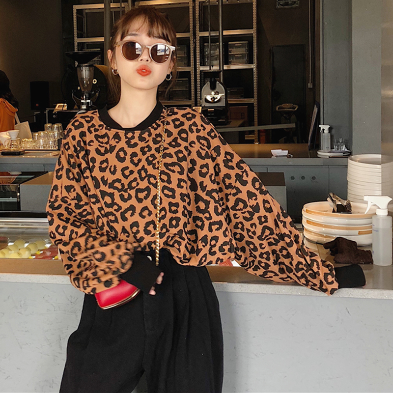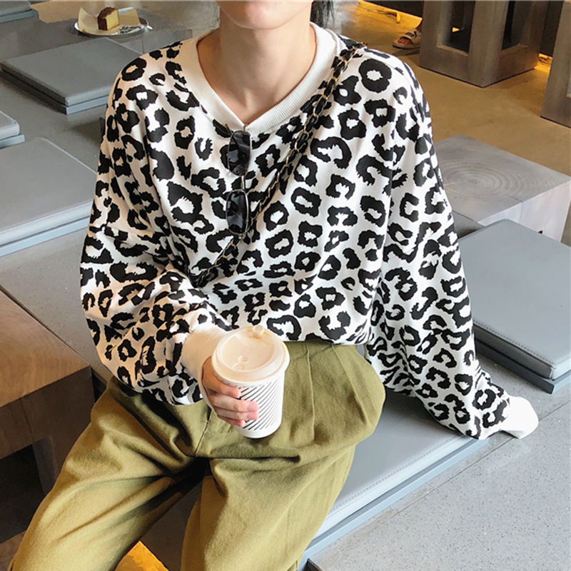 / 2018新款韓版個性休閑豹紋衛衣女秋裝學生寬松時尚長袖上衣外套潮