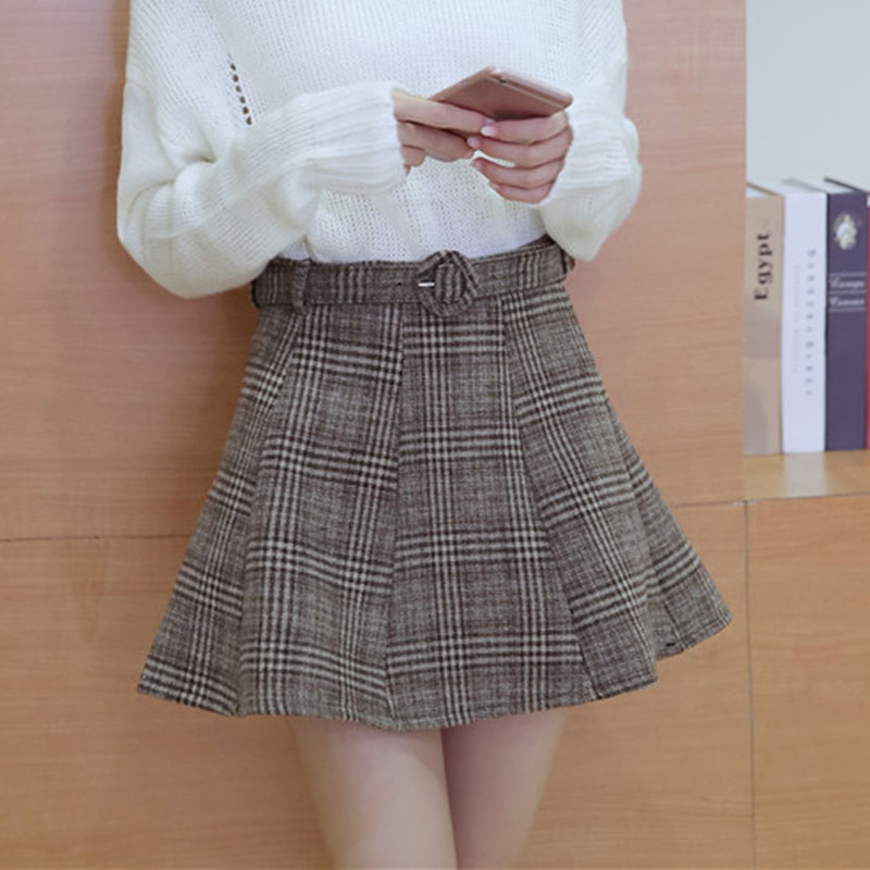 / 秋季新款2018女裝學院風毛呢格子半身裙學生氣質顯瘦高腰a字短裙