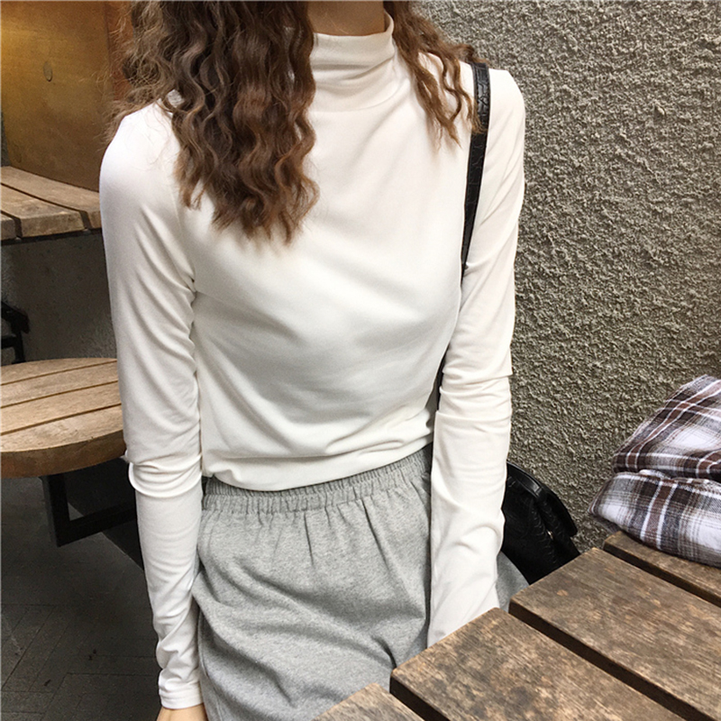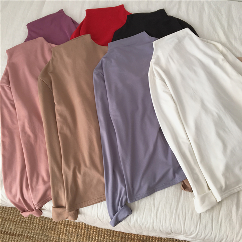 / 糖果色打底衫秋裝女2018新款韓版學生修身長袖T恤時尚半高領上衣