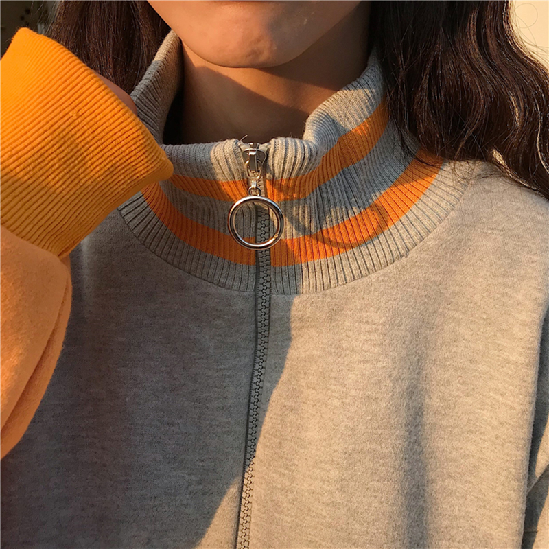 / 冬季新款女裝韓版拼色高領超火衛衣外套寬松加絨加厚學生長袖上衣