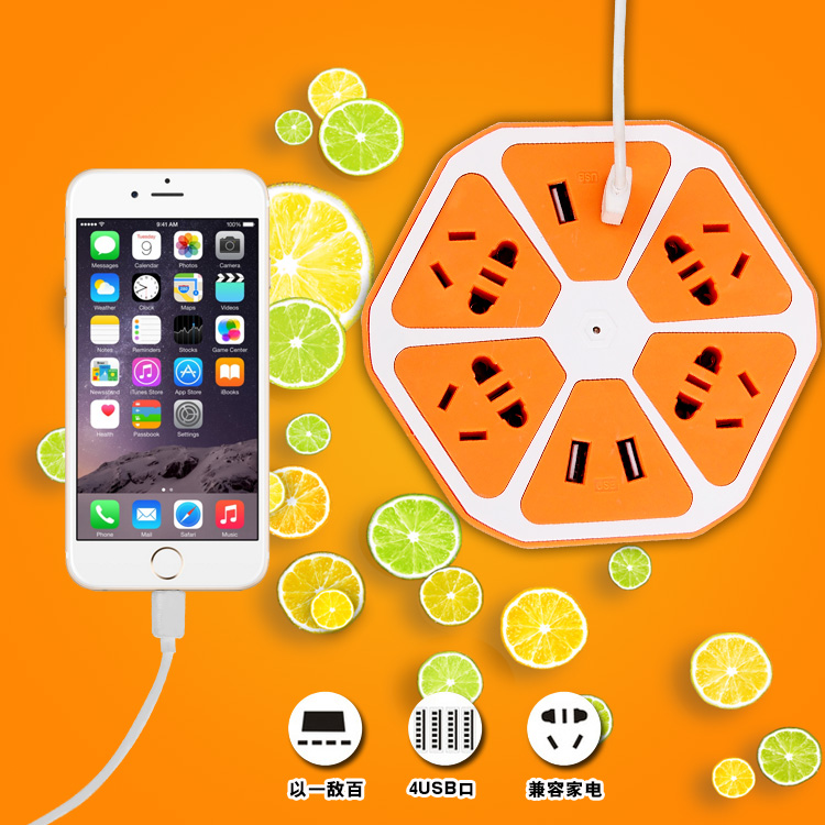 / 檸檬創意插座智能usb插線板多功能排插家用多用充電多用批插排發