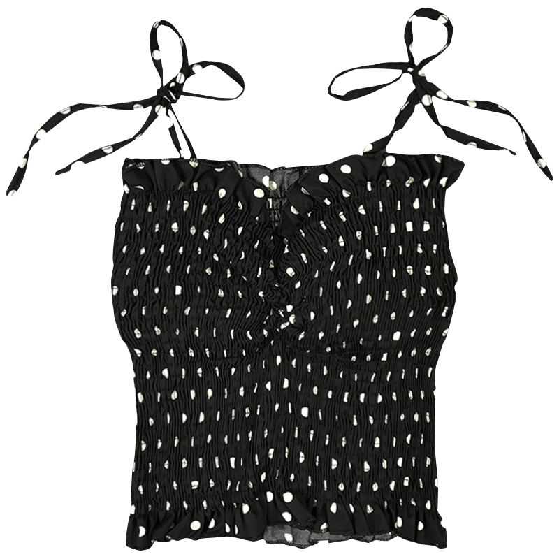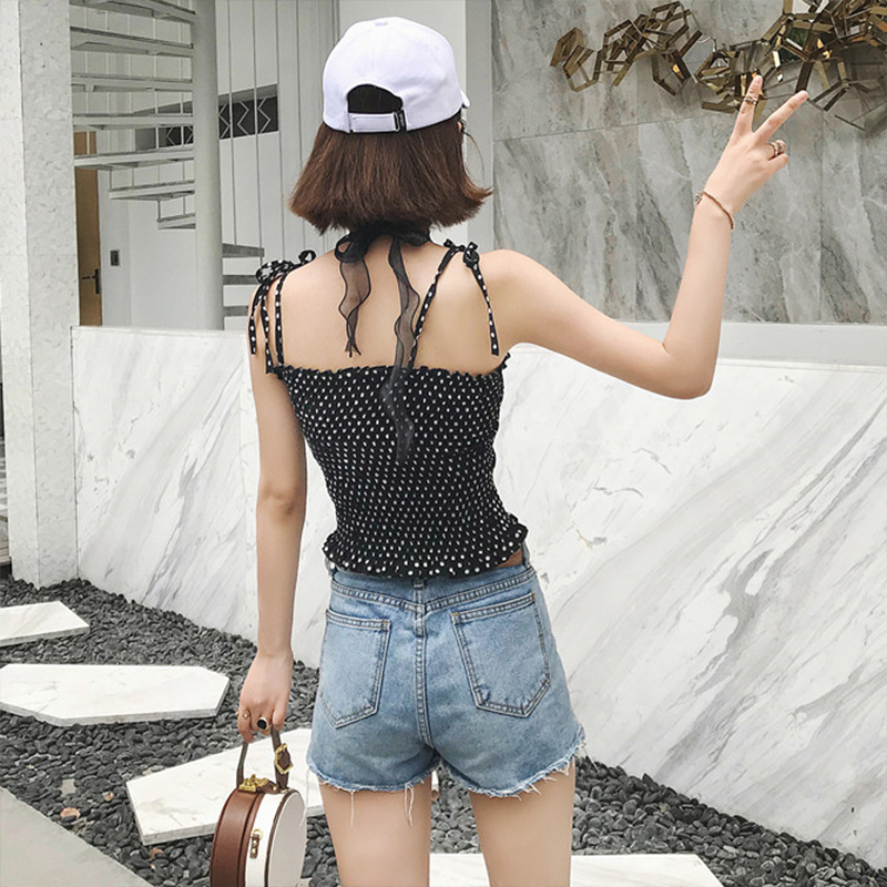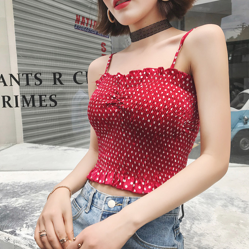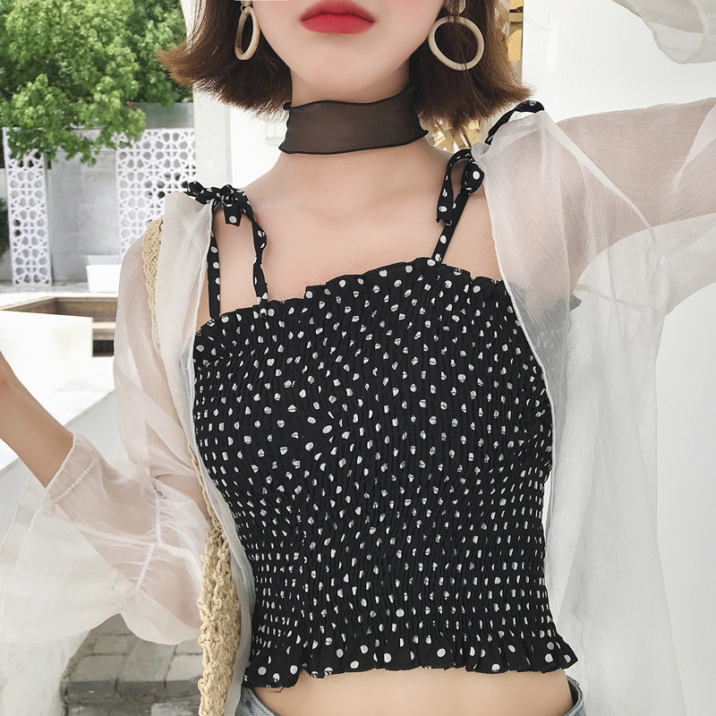 / 夏季新款女裝小心機修身顯瘦系帶波點學生短款抹胸吊帶背心上衣