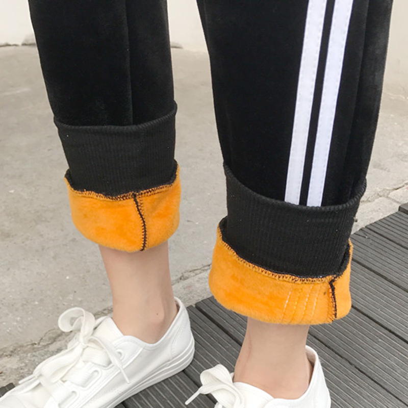秋裝女2018新款側邊條紋束腳哈倫褲高腰絲絨保暖休閑運動長褲子潮