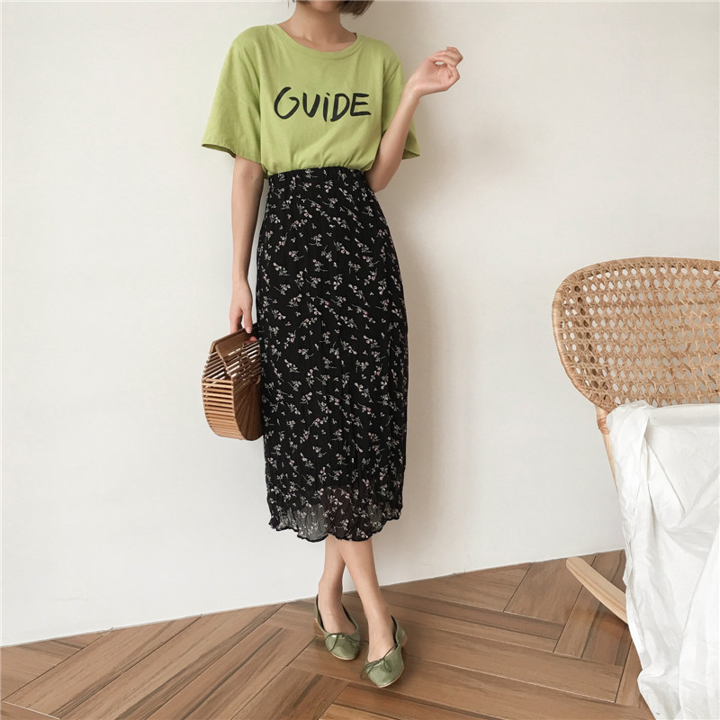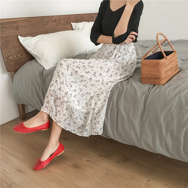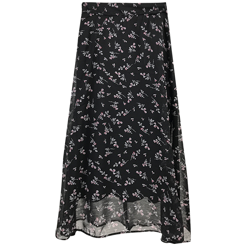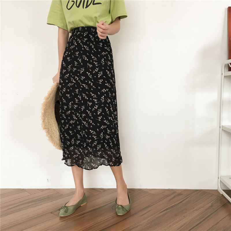 / 夏季新款女裝氣質復古小清新碎花高腰顯瘦學生中長款雪紡半身裙