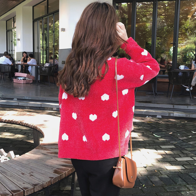 慵懶風套頭毛衣秋裝女2018新款學生寬松愛心長袖針織上衣打底衫潮