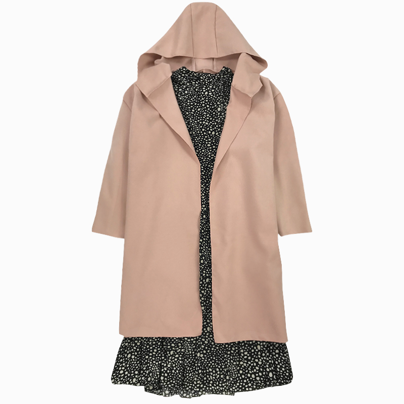 / 御姐套裝女秋冬新款寬松連帽風衣毛呢外套長款波點長袖桔梗連衣裙