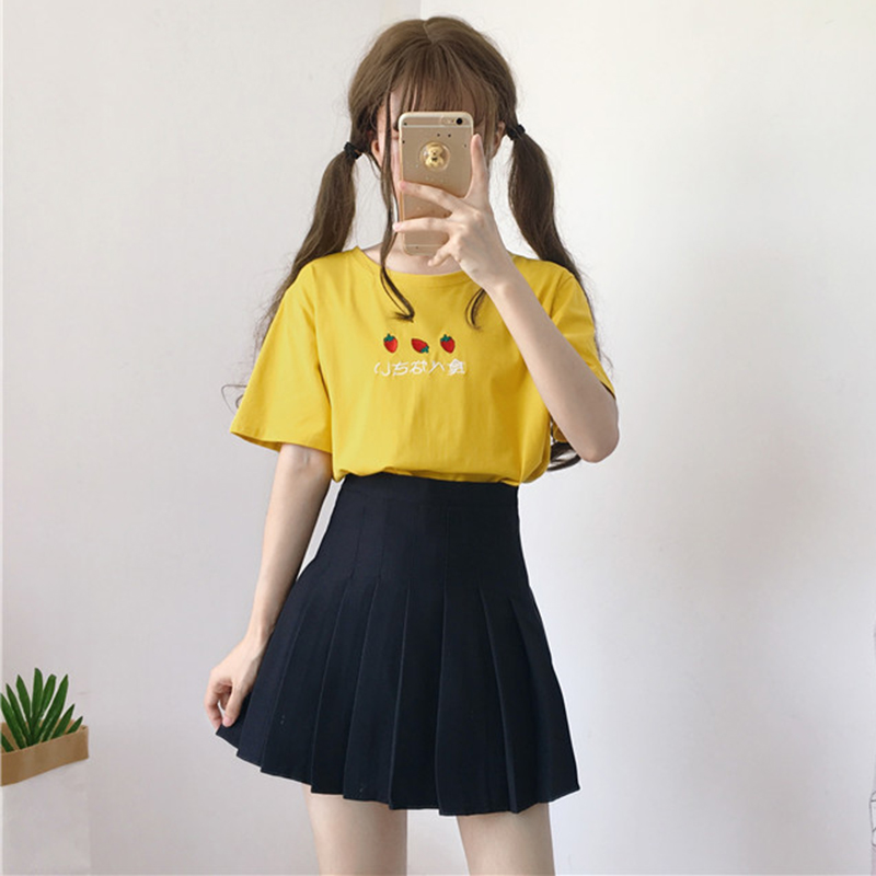 / 百褶裙女夏季新款女裝韓版學院風百搭高腰顯瘦純色學生A字半身裙