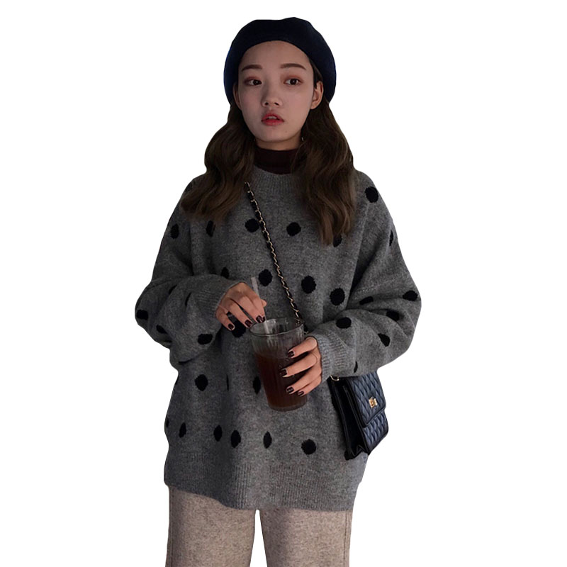 2018新款秋冬女裝韓版慵懶風寬松波點網紅套頭超火毛衣針織衫外套